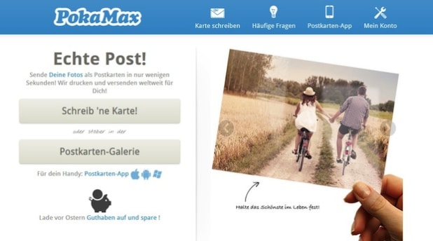 Versehen mit einem Text in Postkartenlänge werden die Daten an PokaMax per Knopfdruck übermittelt, vom Dienstleister als echte Postkarte gedruckt und weltweit verschickt. Wahlweise können auch Grußkarten im Umschlag designt und versendet werden.