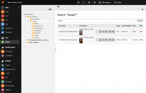 Darüber hinaus werden in der Version 7.5 neue Inhaltselement-Typen in der neuen Extension „Fluid Styled Content“ mitgeliefert. Diese lassen sich auf Basis von Fluid ebenfalls einfach anpassen. Darüber hinaus erlaubt TYPO3 Redakteuren jetzt eine einfache direkte Einbindung von Youtube- und Vimeo-Videos, so wie dies bislang mit Bildern und anderen Inhalten möglich war. Dank einer vereinfachten Suche lassen sich Dateien, die TYPO3 verwaltet, nun einfach durchsuchen. Dadurch arbeitet TYPO3 noch besser als Asset Management Tool.