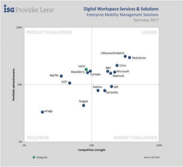 Frankfurt a.M./Zürich/Wien – Matrix42 ist führender Anbieter in den Bereichen Digital Workspace Management Solutions, Enterprise Mobility Management Solutions und Mobile Device Management Solutions. Das zeigt die soeben veröffentlichte, unabhängige Provider Lens Studie der Information Service Group (ISG). Das Research-Unternehmen hebt hervor, dass Matrix42 durch seinen 360° Workspace-Ansatz eine skalierbare, einheitliche Verwaltung für beliebige Geräte und Betriebssysteme bietet. Durch seine ganzheitliche Workspace Management Lösung unterstützt das Unternehmen seine Kunden bei der einfachen, sicheren und geräteunabhängigen Bereitstellung von digitalen Arbeitsplätzen. Grund genug, Matrix42 in allen drei Kategorien im Leader-Quadranten des ISG Reports zu positionieren.